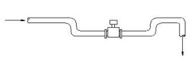 4.當向下管道長度超過5m時,在傳感器后安裝一個虹吸管或一個放氣閥。以避免低壓而可能造成的對測量管襯里的破壞。保證滿管,減少含氣量。