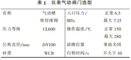 1) 空氣流量計出口管線總閥泄漏無法在線處理,導致氣化爐停車。在入氣化爐根部增加 2 臺儀表氣動閥門,要求每月進行 2 次開、關,防止閥門出現卡塞現象。 新增 2 臺儀表氣動閥門相關參數見表 1。