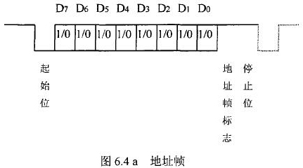 測水流量計等節點設備和站內PC機間的通信采用異步串行通訊控制規程,并采用地址位喚醒握手協議。因此在協議中規定了傳地址和傳數據兩種不同的幀格式,如圖.64所示。地址幀和數據幀由11位構成,幀格式為l位起始位,l位停止位,8位數據位,1位*9位。我們將*9位設定為“地址/數據指示位”,用來區分所發送/接受的幀信息是地址幀還是數據幀。*9位為1,表示PC機發送/接受的是“地址幀”*9位為O,表示主機發送/接受的是“數據幀”。命令幀與校驗和的發送格式與數據幀相同,因此可由數據幀演化得到。