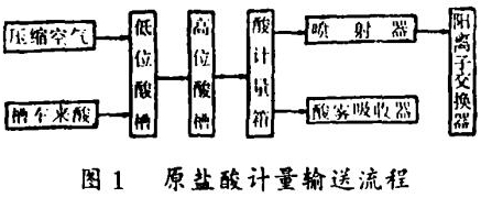 新工藝省去了高位酸槽、酸計量箱和酸霧吸收器,鹽酸計量由管道式流量計控制。該系統是在負壓狀態下運行,消除了溢酸和鹽酸的揮發,解決了對一些設備和設施的腐蝕,以及酸霧對環境的污染問題,使用比較安全可靠。