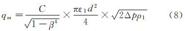 式中:C--流出系數;β--直徑比,β=d/D;D--管道內徑,m;d--工作條件下節流件的開孔直徑,m;ε1--節流件正端取壓口平面上的可膨脹性系數;ρ1--節流件正端取壓口平面上的流體密度,kg/m3。