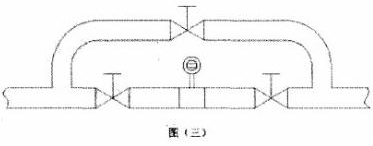 5.被測介質是嚴重污濁液體過容易在管道結垢的液體,可以在安裝傳感器的測量管道上加一個旁通管,以便于拆卸清洗。如圖三所示。