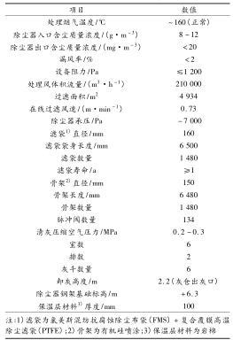 (2) 新建布袋除塵及氣力輸灰氦氣流量計。采用長袋低壓脈沖袋式(外濾式)除塵器,煙氣體積流量為 210 000 m 3 /h,初 始 含 塵 質 量 濃 度 為 8 ~12 g/m 3 ,除塵占地面積為 20 m 2 (5 m ×4 m)。除塵器主要由本體、壓縮空氣系統、控制系統、輸灰系統組成。除塵器后進脫硫塔煙塵質量濃度≤20 mg/m 3 。除塵器的總阻力≤1 200 Pa。新建布袋除塵器型號為 LCMD-4934,設計參數見表 2,其中清灰方式采用離線清灰,除塵器布置方式為矩形布置,電氣控制采用可編程邏輯控制器(PLC)。