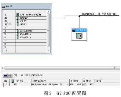 S7-300 控制器與 S7-200 控制器之間的通訊是實(shí)現(xiàn)系統(tǒng)數(shù)據(jù)采集的關(guān)鍵,EM277 可以方便的實(shí)現(xiàn) S7-300 與 S7-200 之間的 PROFIBUS DP 通訊,只需要在 STEP7 中進(jìn)行 S7-300 控制站的組態(tài),簡單配置 EM277 設(shè)備。選中 STEP7 的硬件組態(tài)窗口中的菜單 Optionà Install new GSD,導(dǎo)入 SIEM089D.GSD 文件,安裝 EM277 從站配置文件。導(dǎo)入 GSD 文件后,在右側(cè)的設(shè)備選擇列表中找到 EM277 從站,根據(jù)需要的通訊字節(jié)數(shù),選擇一種通訊方式。本文中需要通訊的數(shù)據(jù)量比較大,選擇了*大的 64 字節(jié)輸入/64 字節(jié)輸出的配置。S7-300 的硬件下載完成后,將 EM277 的撥位開關(guān)撥到與以上硬件組態(tài)的設(shè)定值一致。