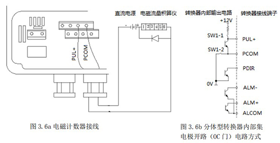 1.5 頻率(脈沖)、上下限報警、流向標示等輸出均為集電極開路的電平輸出信號。